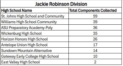 Data will be updated monthly. Schools are listed within divisions and the numbers following each school represent units collected to date. Schools will not be listed until they have registered units.